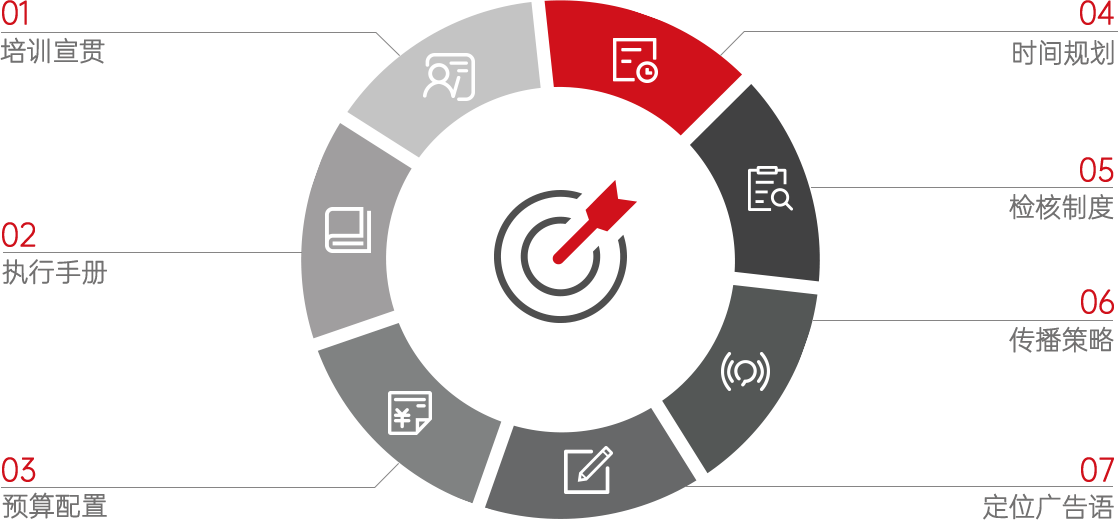 企業確定新戰略定位后,我們將根據企業需要,對核心中、高層團隊及相關員工宣貫定位戰略,以定位探尋邏輯、核心戰略信息和關鍵傳播策略為主要培訓內容,協助核心團隊對定位戰略理解與認同。